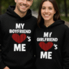 Kahe musta kapuutsiga pusa komplekt valge graafika ja suunava käega ütleb selgelt, kes on kuningas ja kes kuninganna — vaidluseta. Täiuslik ühisteks väljasõitudeks, selfideks ja nende hetkede jaoks, kui on hea, et sõrm näitab õigesse suunda.