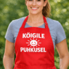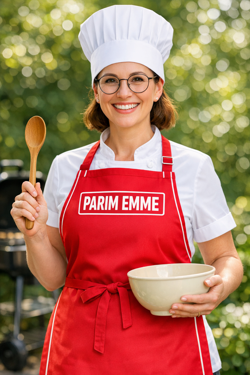 Erkpunane põll, valge kiri ja suur tõde: PARIM EMME! Ühe sidumisega on selge, kes juhib potti ja pere tuju korraga – köögis on nalja rohkem ja emmel ametlik tiitel käes.