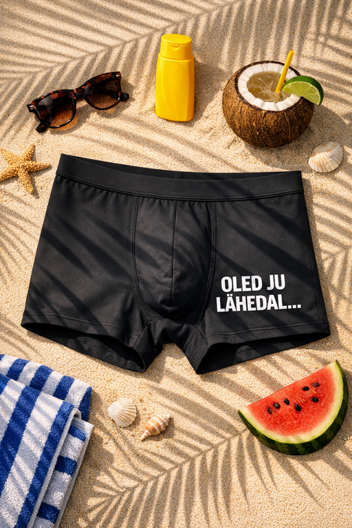 Kui asi kuumaks läheb, annavad need bokserid sõbraliku vihje: SIIN SA JUBA OLED… Must klassika vaimuka kirjaga, mis ütleb rohkem kui tuhat sõna ja aitab meeleolu kergelt üleval hoida.