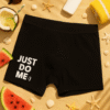 Need mustad meeste bokserid kirjaga VÄIKE JA RÕÕMUS ütlevad kõik vajaliku ühe naljaka lausega – enesekindlalt, mänguliselt ja täpselt paraja vembuga.