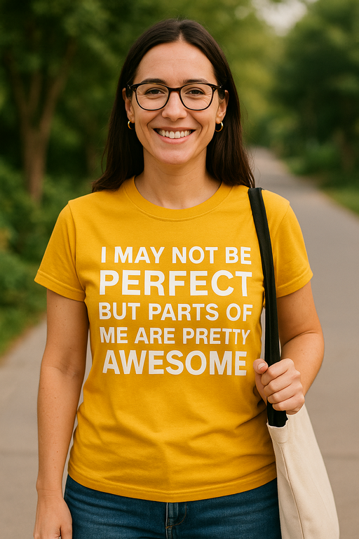 😜 Täiuslikkus? Ei müü. ‘Awesome’? Seda jagub! See sinepikollane T-särk ütleb kõva häälega: I MAY NOT BE PERFECT BUT PARTS OF ME ARE PRETTY AWESOME.