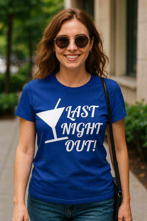 🍸 Kui T-särk kirjaga LAST NIGHT OUT! astub baari, teab baaritöötaja juba: kõrred valmis ja mälestused lukku! 😎 Kuninglik sinine püüab pilke, valge martiniklaasiga trükk ütleb selgelt: tiim on missioonil. See särk on teie ühiseks märgiks, et õhtu läheb legendi — esimesest toostist kuni viimase taksosõiduni. Pange naeratus ette, sest lugu alles algab!