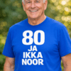 „70 JA IKKA NOOR” ütleb kõik: kogemusi on, aga säde on alles. Mugav sinine T-särk toob sünnipäeval tähelepanu ja paneb inimesed naeratama.